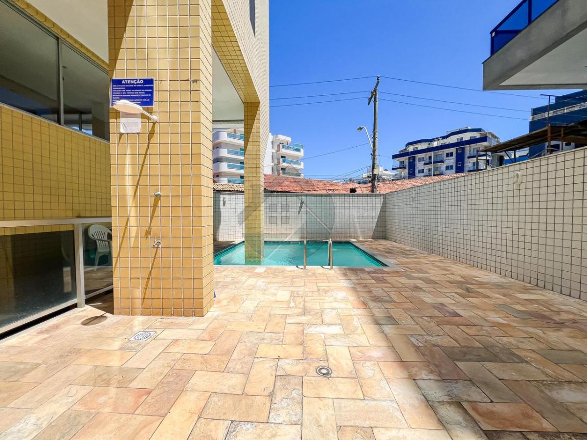 Condomínio com piscina e elevador.