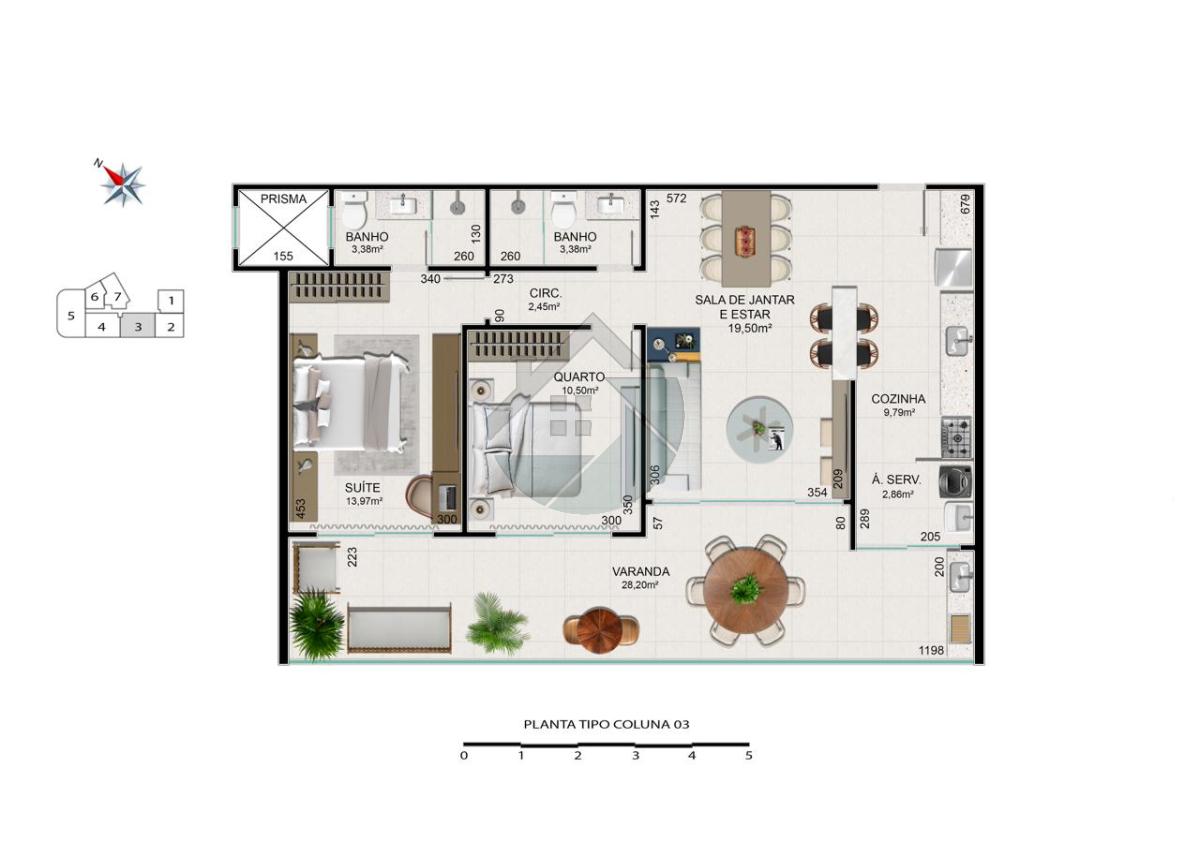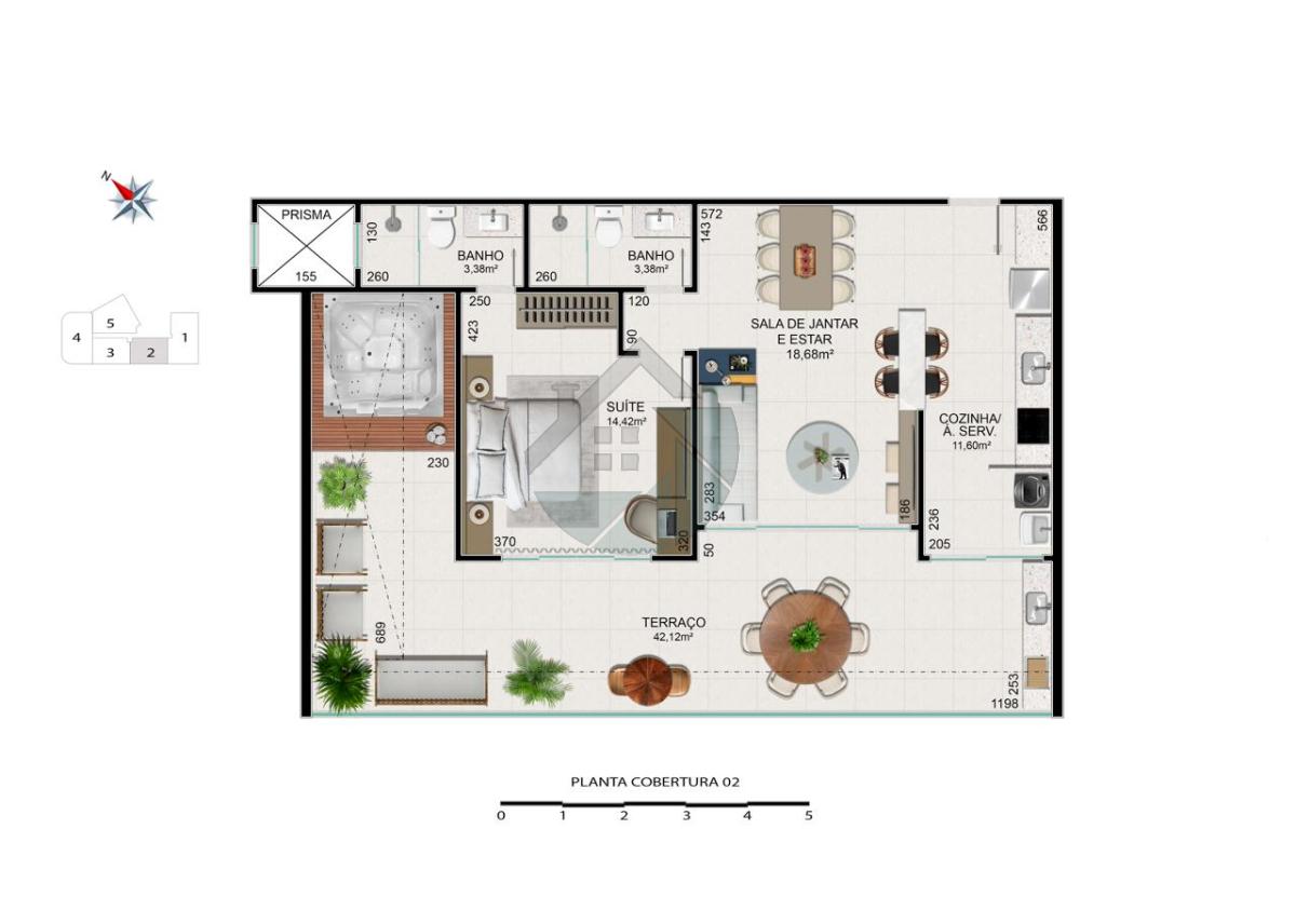 Opções de 1, 2 e 3 quartos e Coberturas lineares