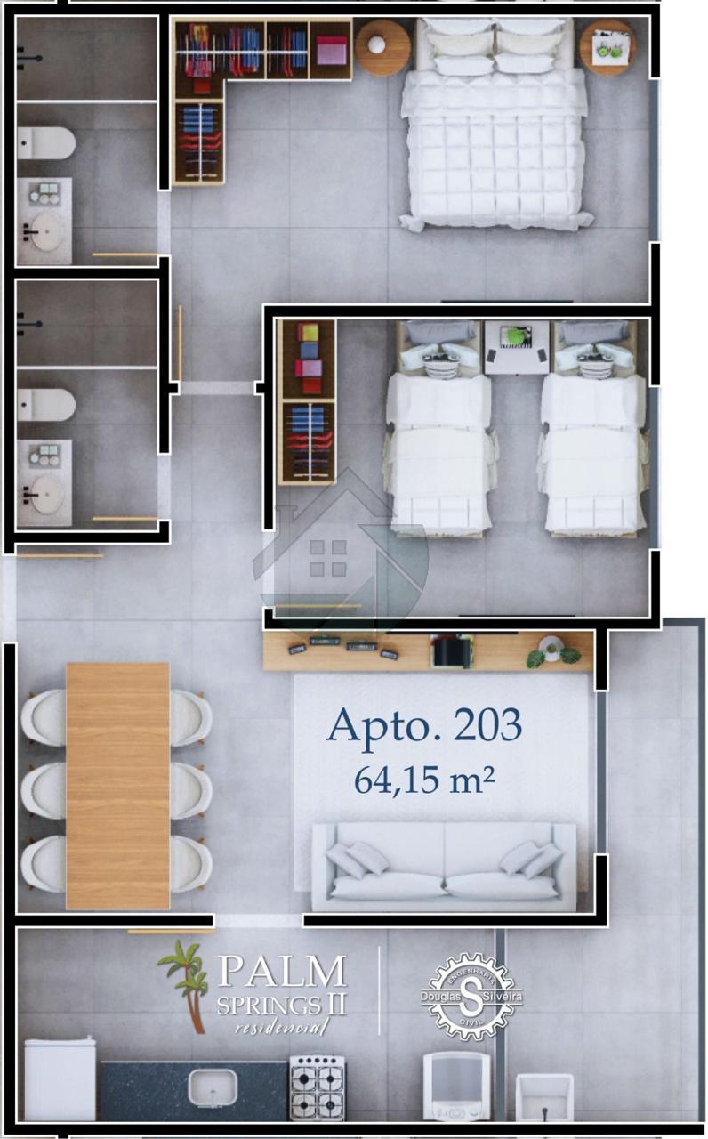 203 - (64,15m²) - 2 QUARTOS (1 SUÍTE) = R$498.000,00